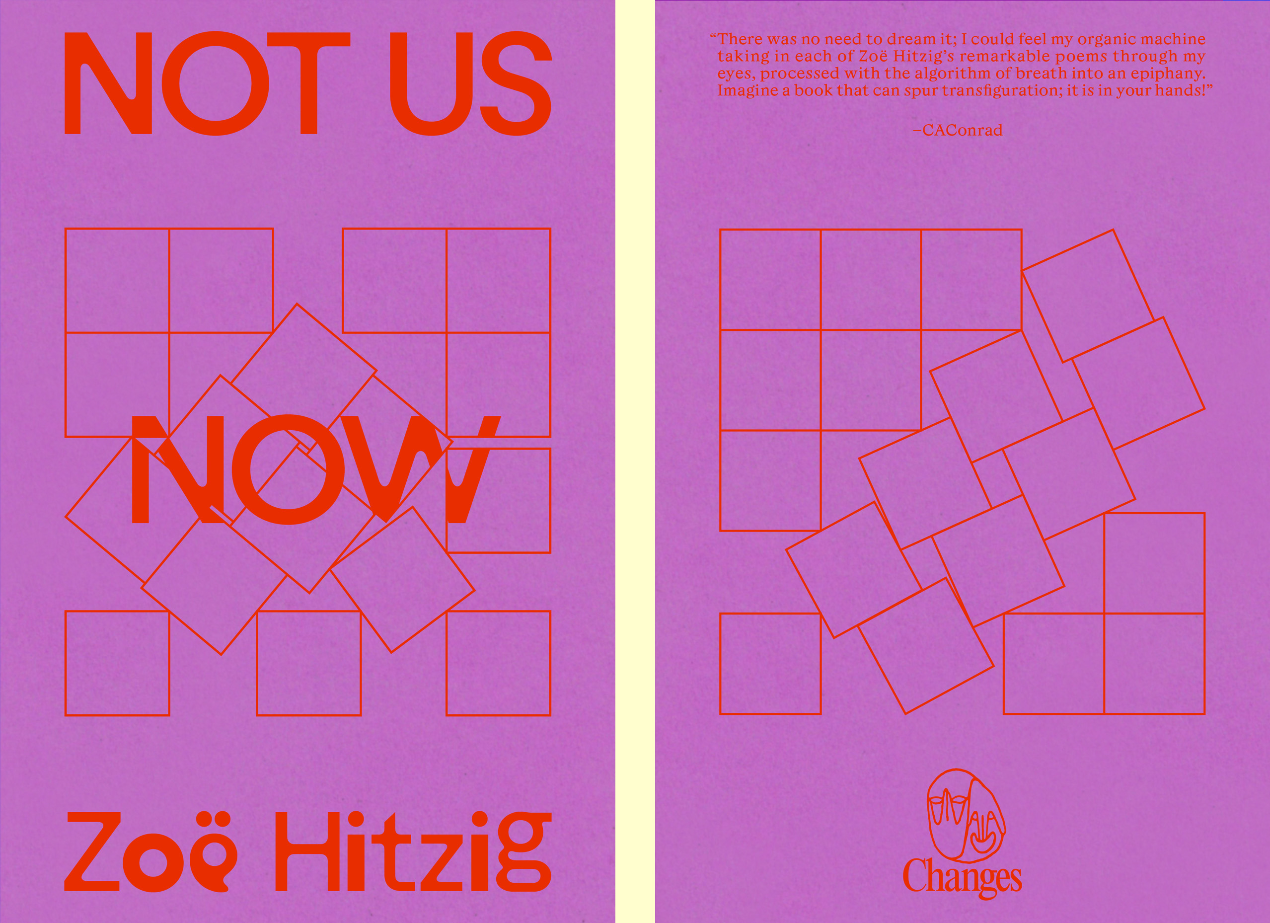 “In Zoë Hitzig’s stunning collection Not Us Now, algorithms are a ubiquitous feature of modern life. Our likes, preferences, and upvotes transform our passions and personalities into products exchanged in commerce. These lyrical poems detangle and interrogate algorithmic structure and power, asking us to not ‘forget that spending spent you,’ and to remember that the plottable points constructing a line are not the whole story, are not life or the rehearsal for life. In these poems algorithms mean relationships, memories, entangled variables. Algorithms require algebra, and in poems lush and voracious, Hitzig grants us a language for how these tricky systems work to tether us to one another.”